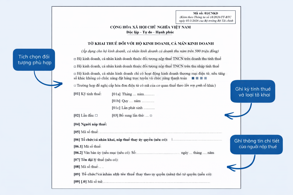- Chỉ tiêu [01b] áp dụng cho hộ kinh doanh có doanh thu năm trên 500 triệu đồng đến 50 tỷ đồng